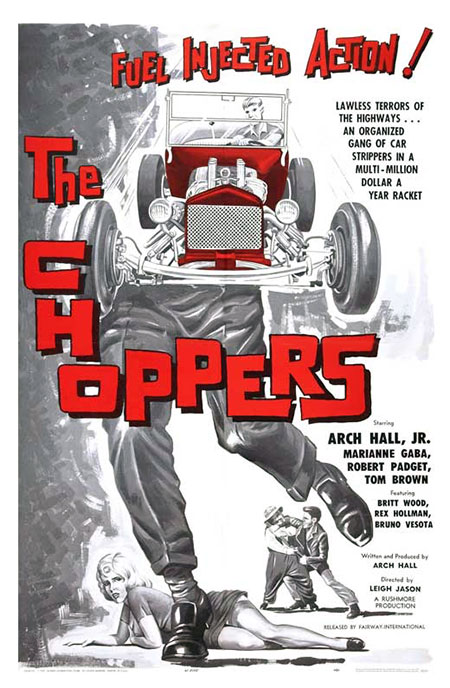 U.S. film. See this fuel-injected, hot rod action film! Arch Hall, Jr. and his teen punk gang (Torch, Flip and Snooper) strip cars faster 'n you can say "juvenile delinquent." The Choppers steal car radios, carburetors, and chop up any car if they can make an easy buck.
