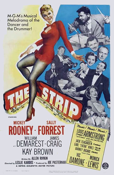 Songs include: "Shadrack," "Basin Street Blues," "Don't Blame Me," "La Bota," "A Kiss To Build A Dream On." Mickey Rooney, Sally Forrest, William Demarest, James Craig, Kay Brown, Louis Armstrong, Earl 'Fatha' Hines, Jack Teagarden, Barney Bigard, Vic Damone. The Strip!