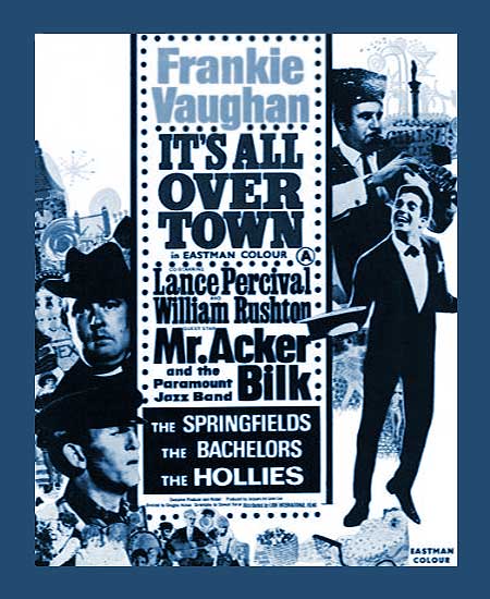 Mr. Acker Bilk and his Paramount Jazz Band: "Sippin' Cider Beside 'er," "Volga Boatmen." The Bachelors: "The Stars Will Remember." Frankie Vaughan: "It's All Over Town," "Give Me The Moonlight," "Gonna Be a Good Boy Now," "Wouldn't You Like It," "Alley-Alley-O." Jan and Kelly: "The Trouble With Man." Alan Davison: "Please Let it Happen to Me." Cloda Rogers: "My Love Will Still Be There." Lance Percival: "The Beetroot Song." Also, The Bunnies from the Raymond Revuebar Club in London. William Rushton. It's All Over Town.